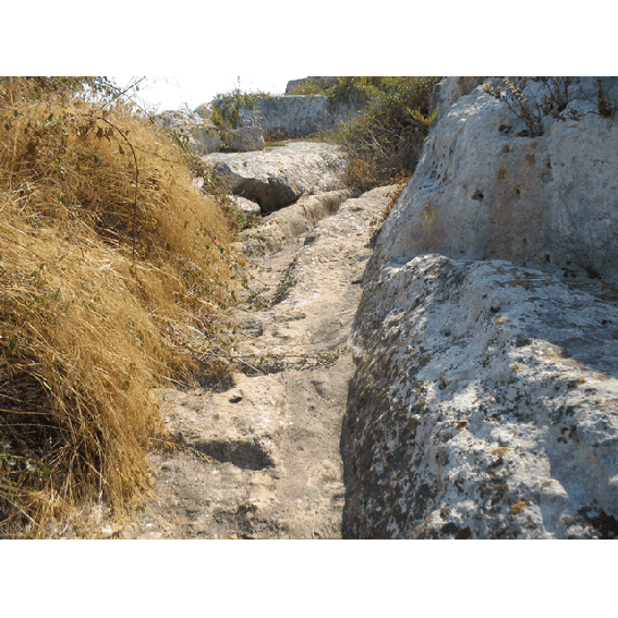 è adiacente all'antica via di accesso alla città da nord vedi l'antica scala dei greci