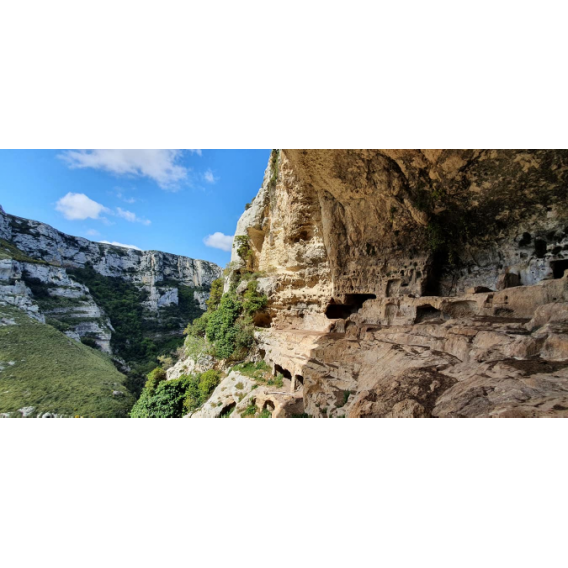 Splendido percorso, piacevolmente avventuroso, lungo il sentiero di Mastra Ronna alla scoperta della Grotta dei Briganti, immenso complesso rupestre settentrionale di Cavagrande, fondato dai siculi e abitato, nei secoli, dai bizantini, dagli arabi (che lo adibirono a Conceria di pelli) e, più recentemente, nel XIX secolo, dai Briganti che lo utilizzarono come rifugio, da cui il nome della Grotta.