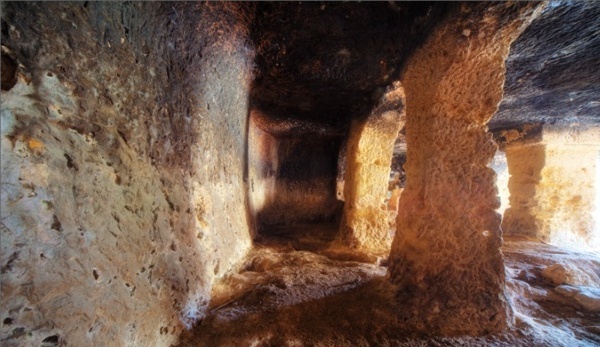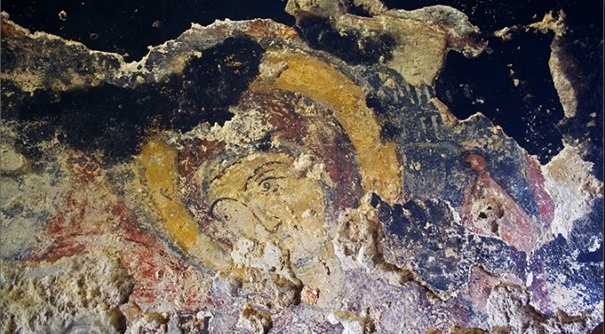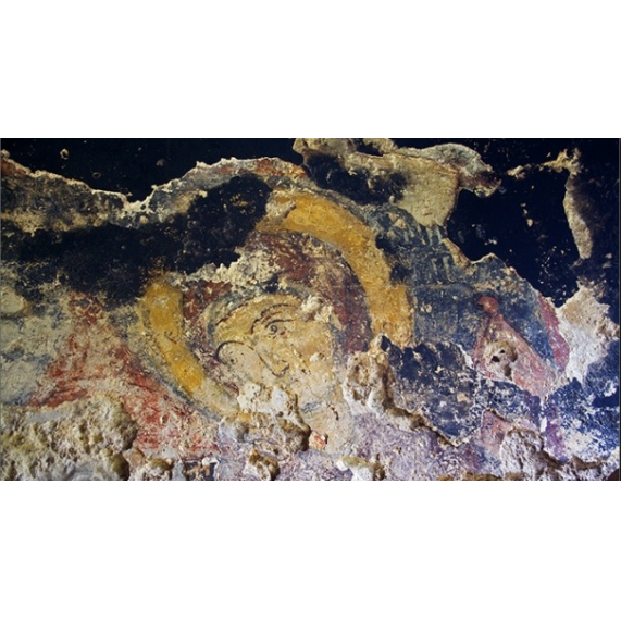 Sulle pareti epigrafi e croci greche sono accompagnate dalle labili tracce degli affreschi che un tempo le adornavano.