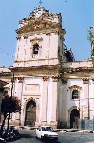 Stilisticamente riecheggia la Chiesa del Collegio dei Gesuiti di Siracusa.