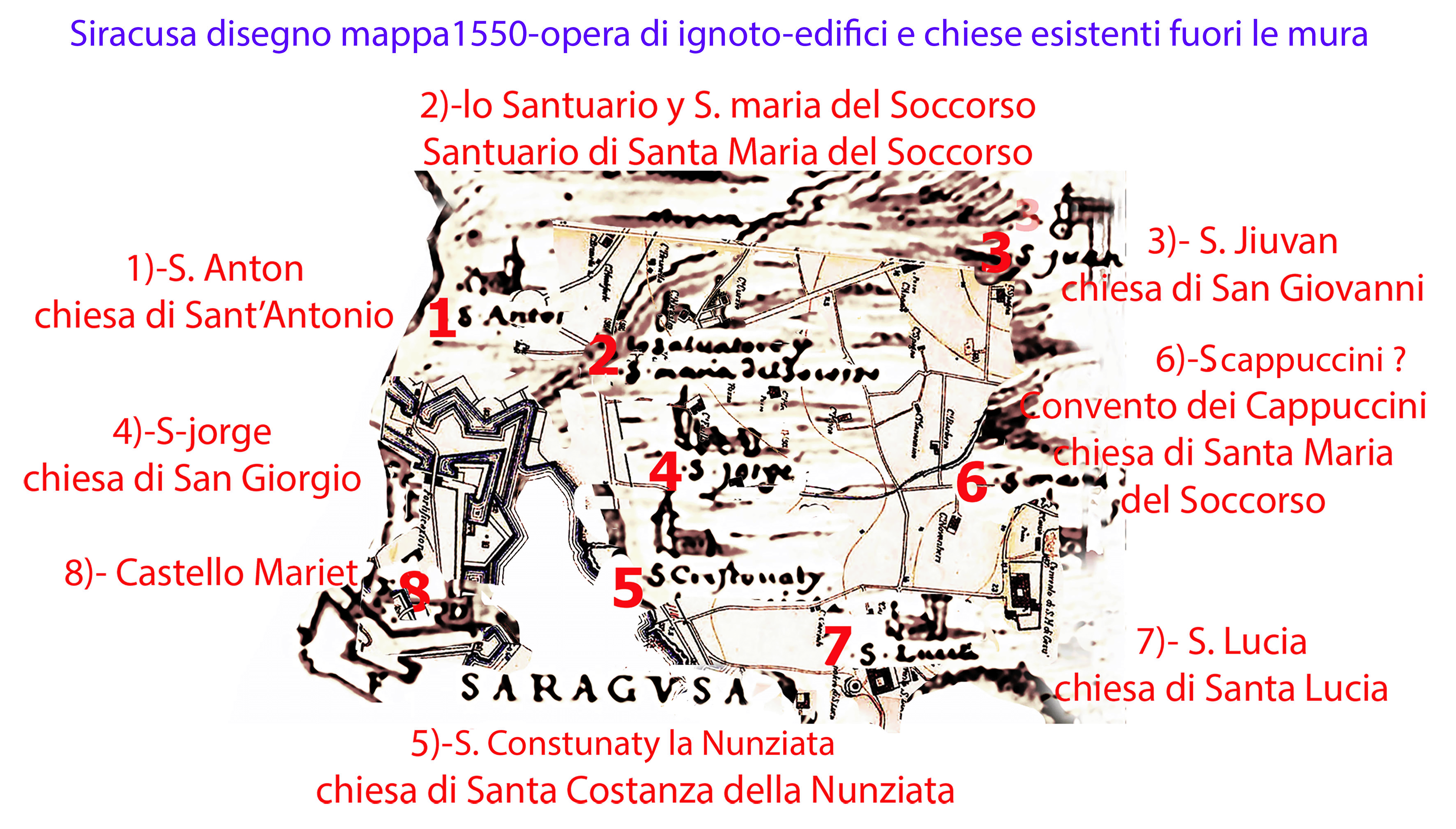 mappa edifici religiosi in Ortigia mappa chiese demolite fuori le mura