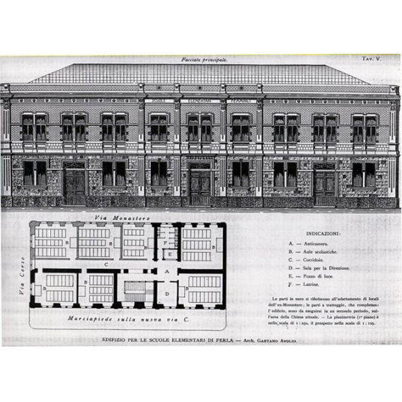 L'Arch. Avolio da Siracusa ha voluto comunicarci un altro dei suoi diligenti lavori, l'adattamento a scuole femminili di una parte dell'ex monastero di Feria del quale ne ebbe incarico dall'Ing. V. Moscuzza che nell'occasione gli rilasciò un attestato di stima.