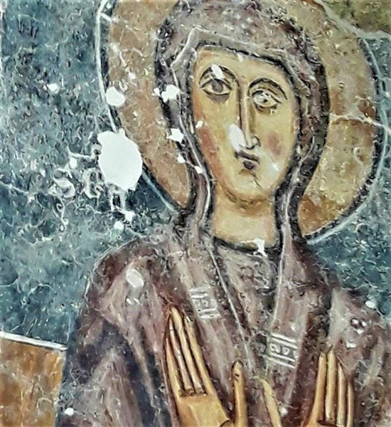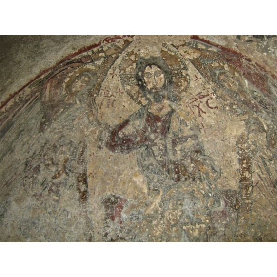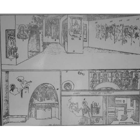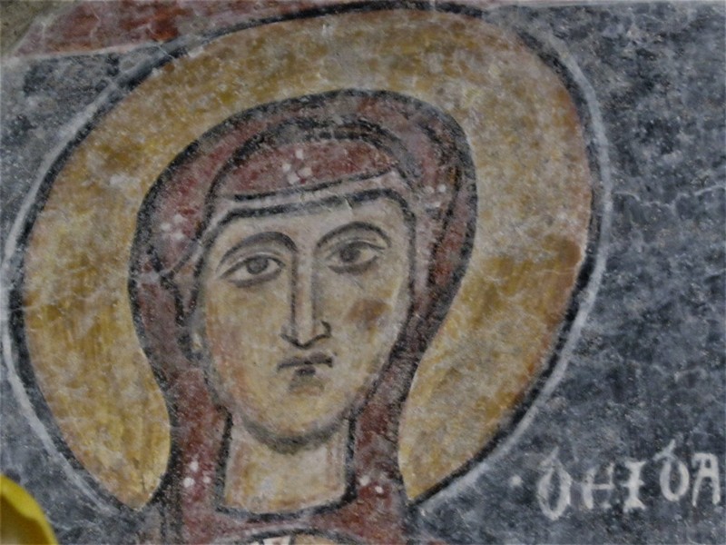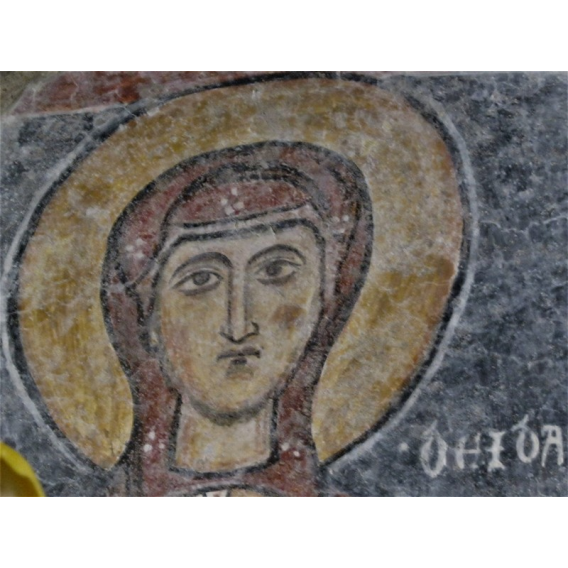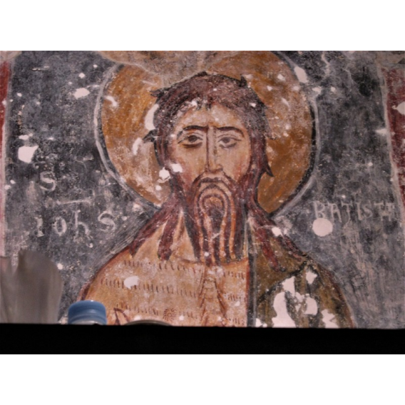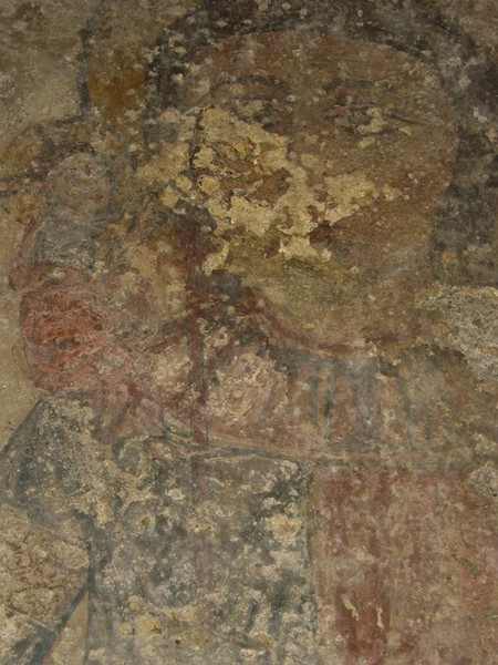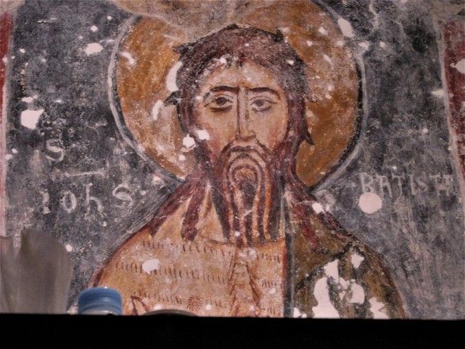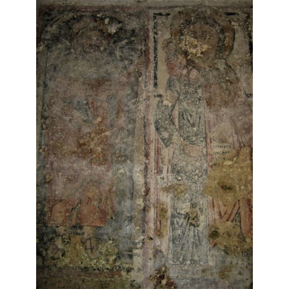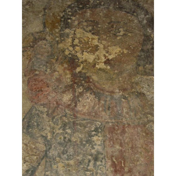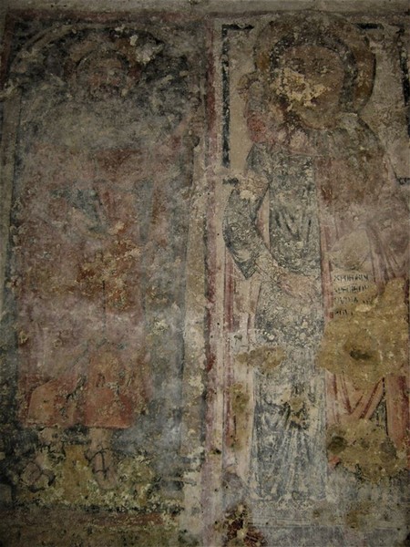 Ancora altre immagini di Santi nelle varie pareti. Senz’altro le meglio conservate e spettacolari a vedersi sono quelle che possiamo ammirare nella parte ad ovest dove sono visibili un Cristo viandante, del XVII secolo, ed un San Cristoforo del XV°. Seguono Santa Elisabetta, la Vergine con il Bambino, San Leonardo, San Giovanni battista, un Santo Vescovo e la scena di un “threnos” con il calvario e la deposizione di Cristo.