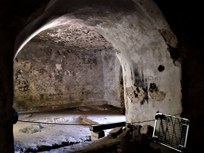 Il vano di sinistra ha un altare nella parete ovest e nel lato sud due vani simmetrici che furono utilizzati come ossari.