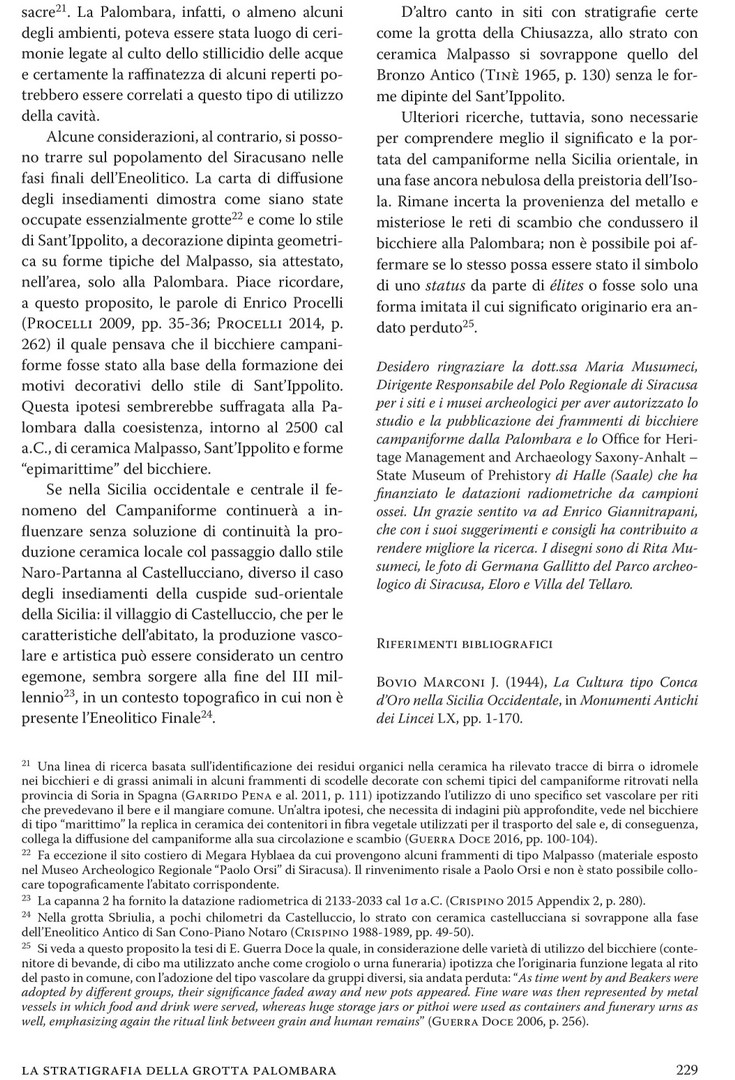 e sette frammenti riconducibili al bicchiere campaniforme decorati apointillé (Tinè 1960-1961, p.