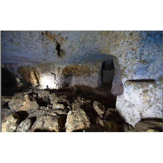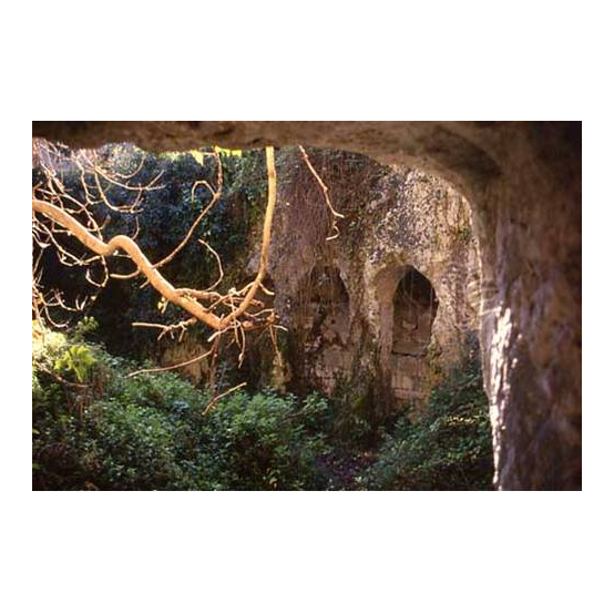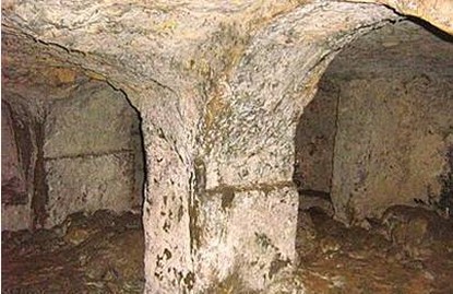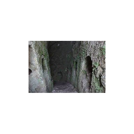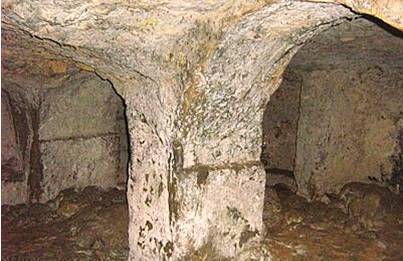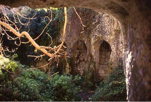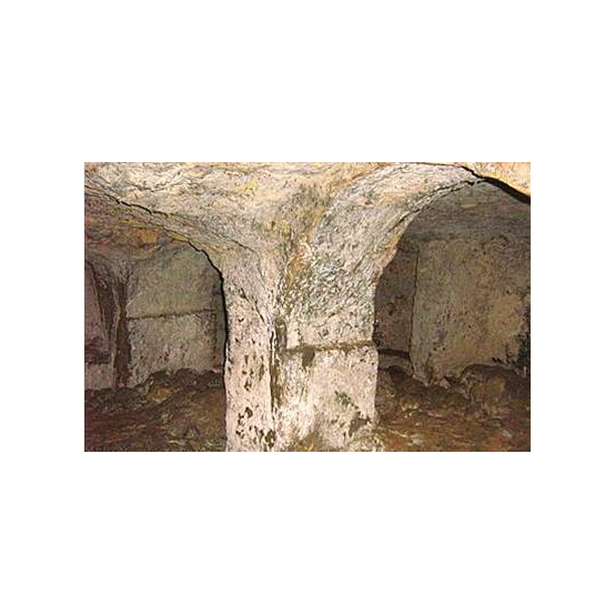 Due rampe di scale scavate nella roccia permettono di raggiungere l’ipogeo, a circa 20 metri di profondità, costituito da un ampio ambiente nel quale si trova una ricca sorgente d’acqua, alla quale sono state riconosciute qualità benefiche. Una delle due scale, corrispondente in alto ad un lucernario, presenta nelle pareti una serie di arcosoli sepolcrali cristiani.