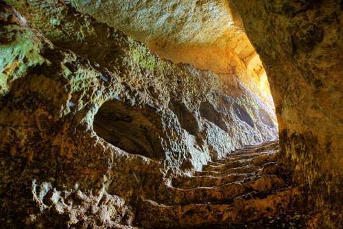 All’interno del complesso monumentale paleocristiano di Santa Lucia di Mendola si trova la cavità naturale in cui, secondo la tradizione, trovarono rifugio i santi martiri Lucia e Geminiano incalzati dalle milizie romane e dove, miracolosamente, sgorgò la sorgente d’acqua che ancora oggi alimenta il sacro pozzo. L’accesso è agevolato da una scala intagliata nella roccia e fiancheggiata da numerose sepolture ad arcosolio monosomo disposte lungo le pareti. La basilica si trova a 25 metri di profondità, ha la forma di una “T” ed è composta da un grande ambiente rettangolare con soffitto piano e ripartito in due da un’iconostasi sagomata nella roccia con tre aperture ad arco a tutto sesto. Nel soffitto alcuni anelloni di pietra lasciano desumere la funzione sospensoria di lucerne; mentre nella parete di sud-est è ricavata un’abside e in un’altra di destra una porticina conduce ad un modesto vano, forse un diakonikon. (foto Diego Barucco per SiciliaFotografica.it)