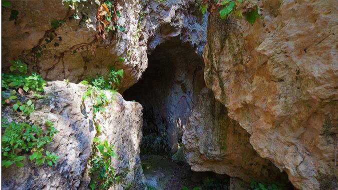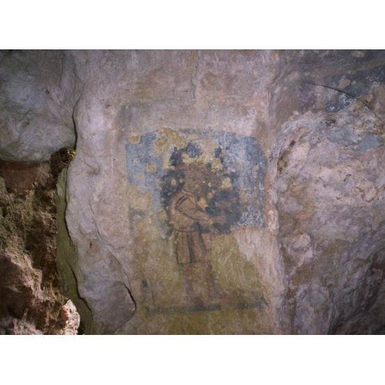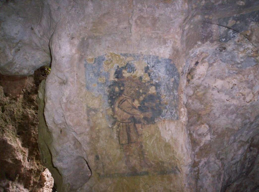 Il pozzo sacro (o fonte battesimale) che si trova all'interno dell'ipogeo sottostante la chiesa, cela un misterioso ed angusto passaggio semisommerso e una strettoia non molto lunga che conduce in una spettacolare grotta carsica con sviluppo a meandro e sala finale di crollo. La cavità, lunga un centinaio di metri, è percorsa dal corso d'acqua freddissima che alimenta il pozzo sacro.