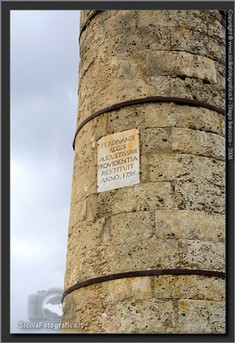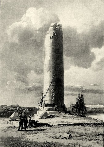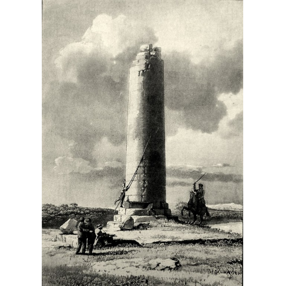 E’ una colonna formata da massi ben squadrati che si erge sopra una base di quattro gradini alta 1,67 m. con un diametro di base di 3,79 e un altezza di circa 10,50 m.