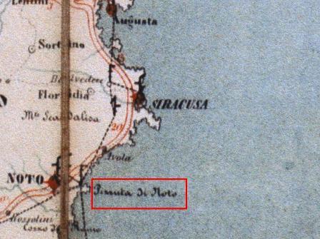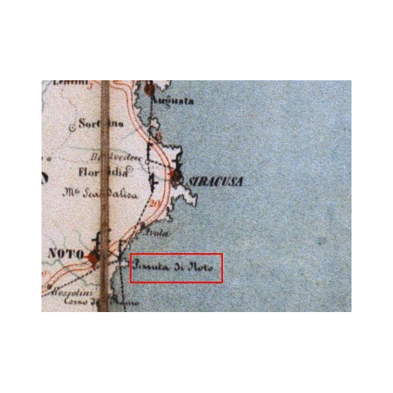 Parte della mappa telegrafica del Regno delle Due Sicilie in cui viene segnalato il telegrafo ottico della "Pizzuta di Noto"