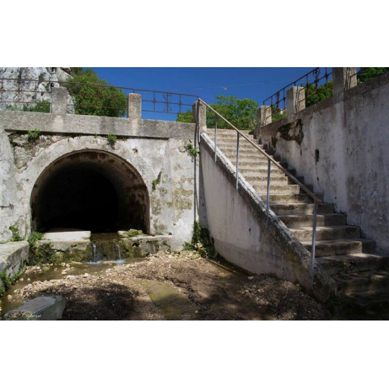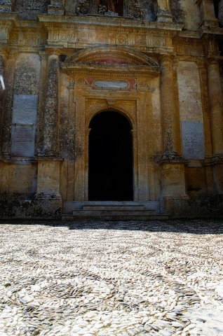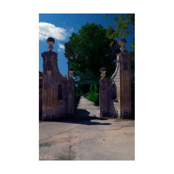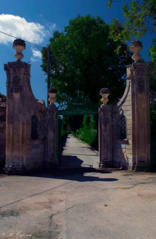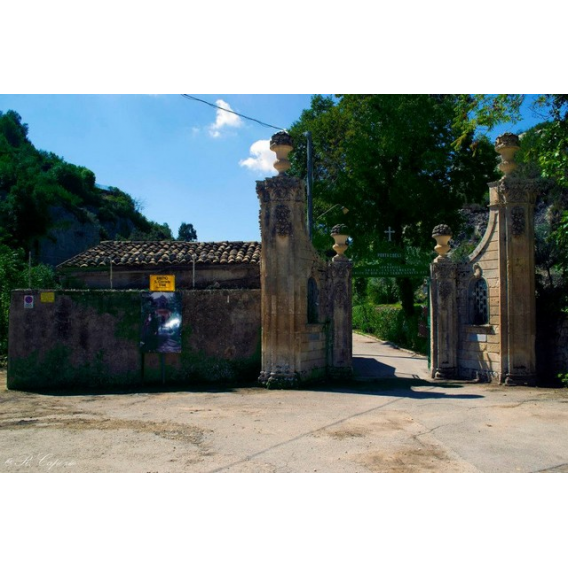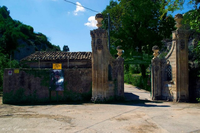 Il cancello settecentesco i cui pilastri sono adornati da pinnacoli a carciofo caratterizzato da una bella cancellata avente un'elegante struttura in ferro battuto riportante la dicitura "Porta Coeli" (frase latina significante "Porta del Cielo") seguita da una frase in latino che significa "Il luogo in cui stai entrando è sacro e porta in Cielo". Accanto ad esso vi è un cancello secondario (chiuso da un catenaccio) da cui si può ammirare il fondo della splendida Cava dei