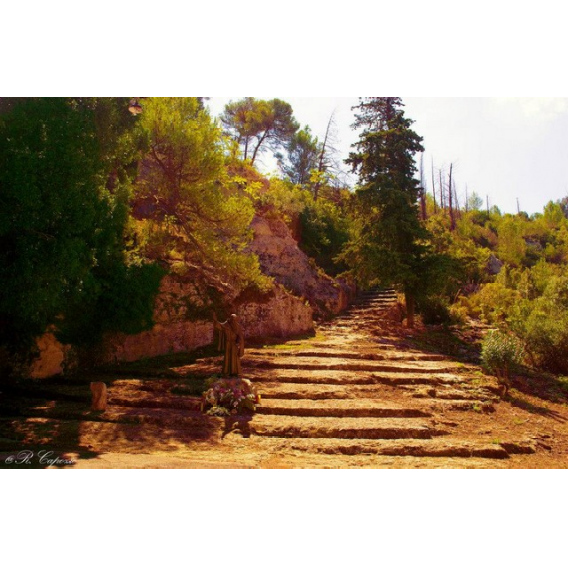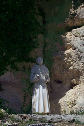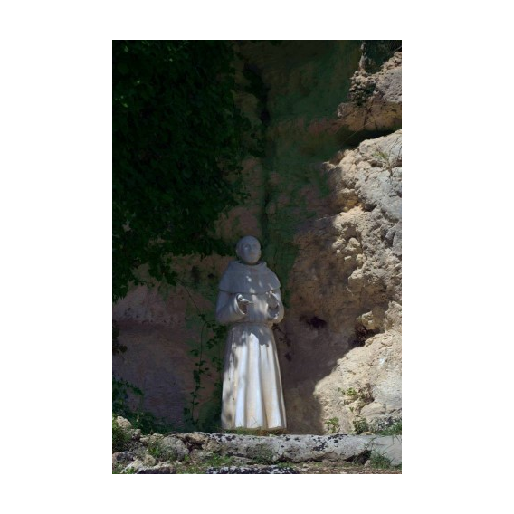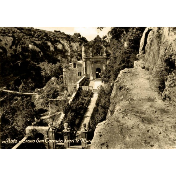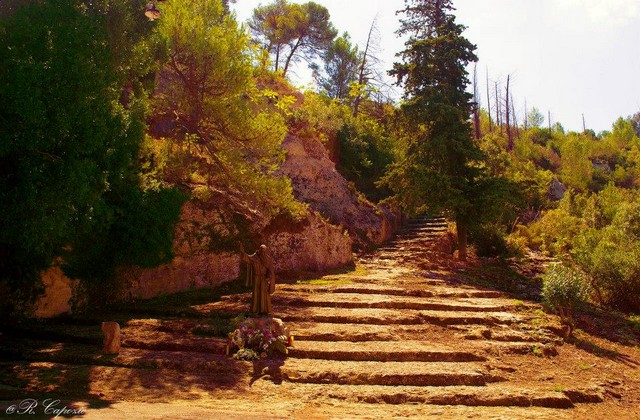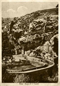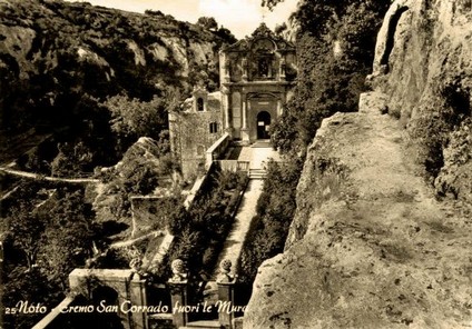 Oltrepassato il cancello ci si incammina verso il cuore della "Cava dei Pizzoni" tramite un lungo viale adornato da piante mediterranee. Man mano che si entra dentro la cava ci avviciniamo all'Eremo in cui visse e morì da eremita "San Corrado Confalonieri" da Piacenza.