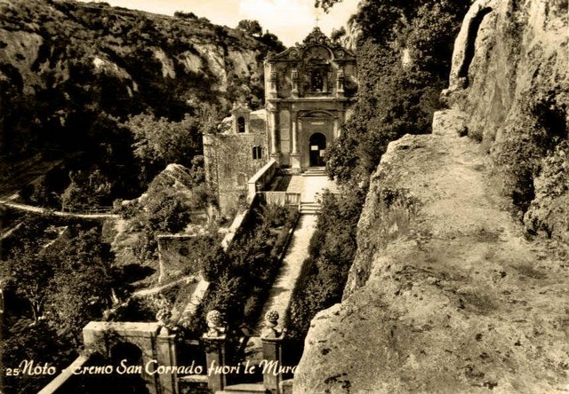 Il santuario è edificato in quello che, tra il fino al 1351, fu il luogo di eremitaggio di S. Corrado Confalonieri, Patrono della Città di Noto, e per questo definito "La Valle dei miracoli". Si accede alla chiesa, dalla facciata in stile barocco, dopo aver percorso un lungo viale ricco di vegetazione. L'interno, piccolo ma riccamente decorato, custodisce una statua marmorea di S. Corrado dello scultore G. Pirrone posta nella “Grotta di S. Corrado”, luogo di preghiera e di penitenza dell'eremita; una tela della Madonna col Bambino di Sebastiano Conca (1759) sull'altare maggiore, a sinistra un Crocifisso ligneo (sec. XVIII) e il corpo di S. Leonzio Martire. All'interno dell'Eremo è allestito un museo che raccoglie ex-voto dei fedeli. (Località collinare a 5 Km da Noto)