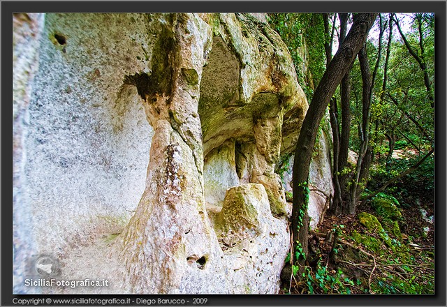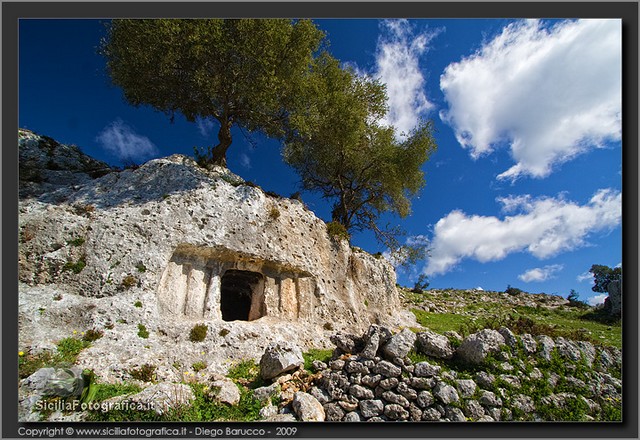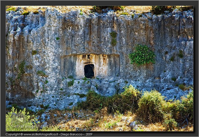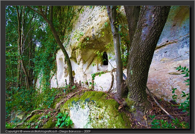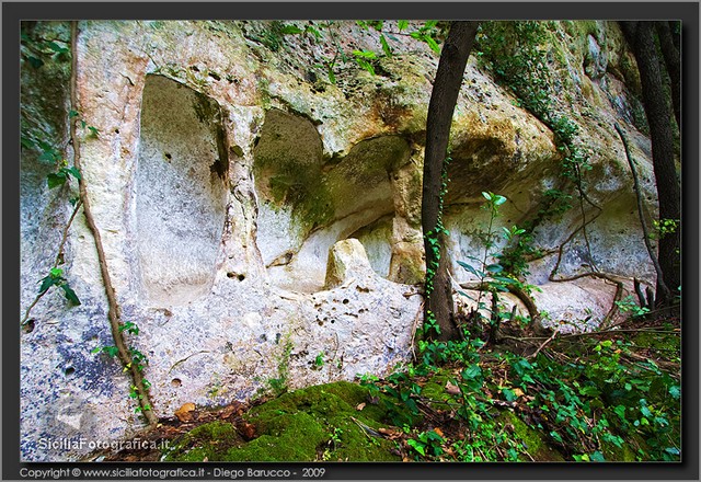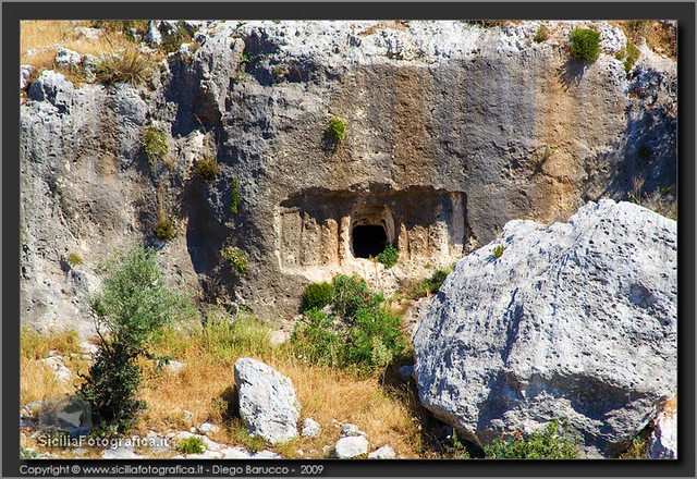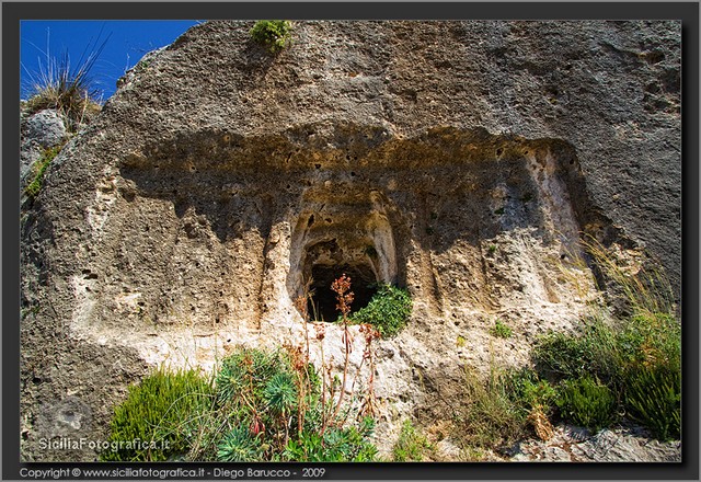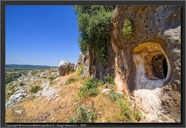 Si tratta di un acrocoro di modesta estensione e dalla posizione facilmente difendibile, occupato dall’uomo in maniera quasi ininterrotta dalla Preistoria ai giorni nostri, che è stato oggetto di una serie di ricognizioni archeologiche di superficie solo in tempi recenti:53 tutte le pareti che circondano il cozzo – come aveva avuto modo di accennare il Carpinteri anche nel rarissimo cicloscritto intitolato La Nostra Scuola, edito dalla Scuola Media di Canicattini Bagni intorno alla metà degli anni Sessanta – sono punteggiate da grotte artificiali ricavate nel tenero calcare locale, alcune delle quali ottenute attraverso l’ampliamento di preesistenti tombe a camera e a grotticella di epoca protostorica.