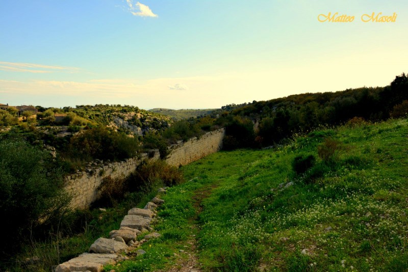 Ma cosa è Noto Antica ? Non si tratta di un sito dai resti monumentali nè tantomeno è raggiunta dalle grandi masse dei turisti. In un luogo suggestivo: un'altura circondata da due profonde gole, due "cave" tipiche della Sicilia orientale, in mezzo alla vegetazione mediterranea spuntano fuori resti di mura e fortificazioni, pezzi architettonici delle chiese dell'antica città medievale, abitazioni scavate nella roccia e vestigia dell'ancora più antica città di epoca greca (Commento Matteo Masoli)