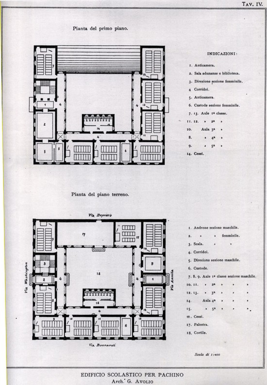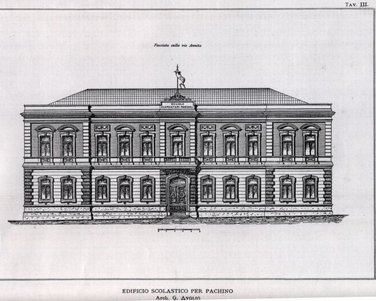 Così pel progetto dell'edificio scolastico di Pachino nella Provincia di Siracusa, l' Ing. Cav. Costa si è associato al nostro valoroso collaboratore l'Arch. Gaetano Avolio, già troppo noto ai lettori di questa Rivista per i tanti lavori da lui pubblicati in queste colonne