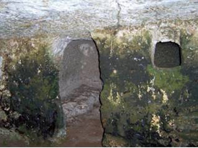 Il primo ambiente è palesemente occupato da una chiesa bizantina provvista di acquasantiera e della tipica iconostasi per separare l’officiante dai fedeli, con i resti di un rudimentale sedile nel retro.