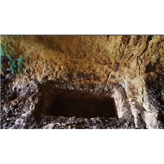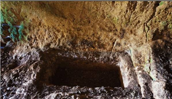 Su un lato del presbiterio si trova una piccola fossa rettangolare, probabilmente il fonte battesimale.