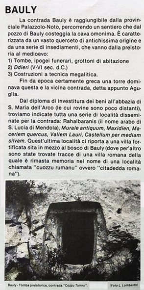 [ Da Daniele Italia e Giuseppe Mazzarella, “L’enigma dei “Ddieri di Baulì”: viaggio tra i misteri delle popolazioni rupestri iblee”, pag. 2 del bimestrale « Grifone » n. 1 (85), Anno XVI, del 28 febbraio 2007 ]