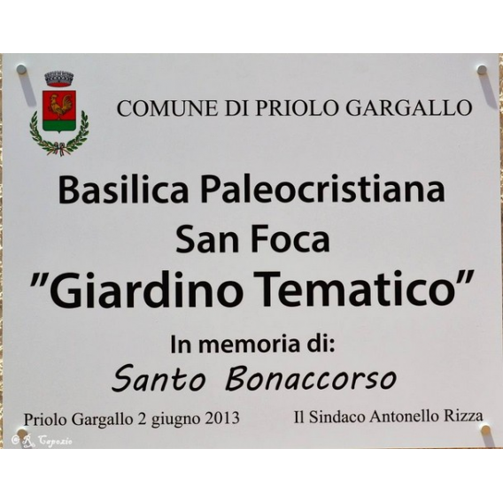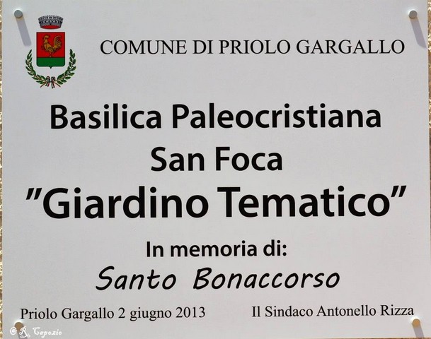Si tratta di una delle più antiche basiliche della diocesi siracusana, sita nella periferia sud di Priolo, poco fuori dall’abitato, e dedicata ad un santo orientale, Focà, “l’ortolano martire” che lavorava come giardiniere a Sinope, una cittadina portuale situata sul Mar Nero nel punto più settentrionale dell’Anatolia. Lì egli visse tra il I ed il II secolo, molto stimato per il suo senso di ospitalità e per la sua generosità. Denunciato come cristiano e quindi ricercato per essere messo a morte, ospitò e nutrì coloro che, senza conoscerlo, lo sta- vano cercando e provvide ad organizzare la sua sepoltura scavandosi la fossa; quindi si rivelò ai suoi ospiti che lo martirizzarono.