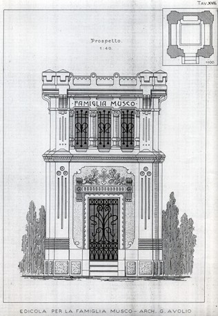La edicola funeraria che presentiamo ai nostri lettori improntata allo stile moderno, fu elaborata l'anno scorso per conto del Sig. Luigi Musco dell'Arch, Gaetano Avolio.