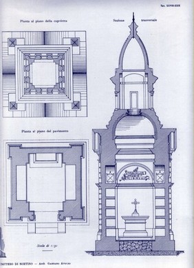 Illustrammo a suo tempo le edicole funerarie Musco e Sortino sorte quasi contemporaneamente nel cimitero di Sortino, le quali furono riportate dopo, in altre Riviste d'arte italiane ed estere. E oggi con compiacimento pubblichiamo i disegni di una terza edicola del medesimo nostro valoroso collaboratore, Arch. Gaetano Avolio, da costruirsi nello stesso cimitero per conto del sig. Notar Rigazzi, che sarà completata in tutti i suoi particolari prima della fine dell'ottobre p. v.